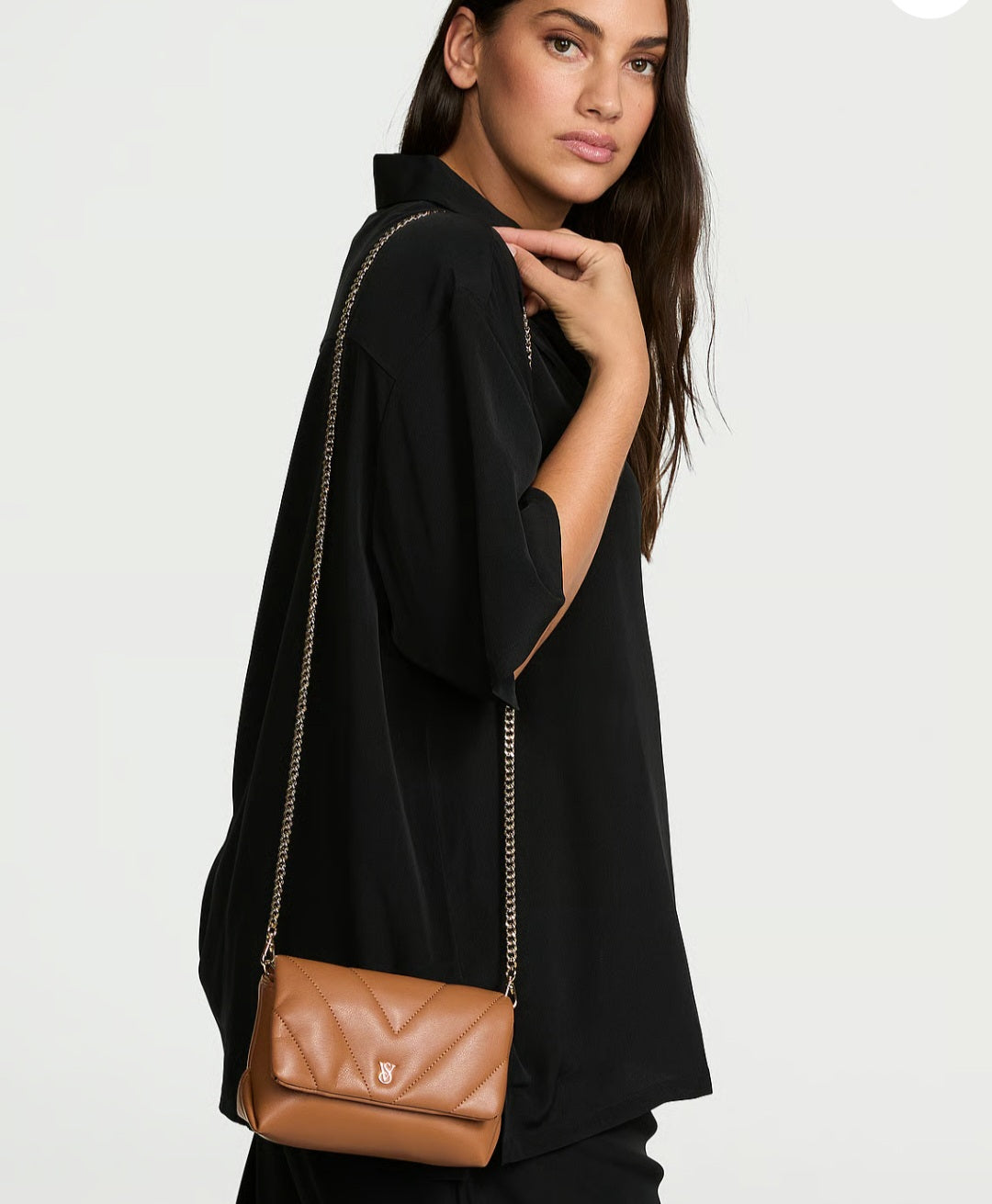Cartera mini Victoria Secrect color cafe. El tarjetero se vende por separado